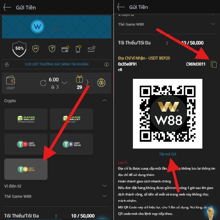 *** HƯỚNG DẪN NẠP TIỀN W88 BẰNG CRYPTO ***